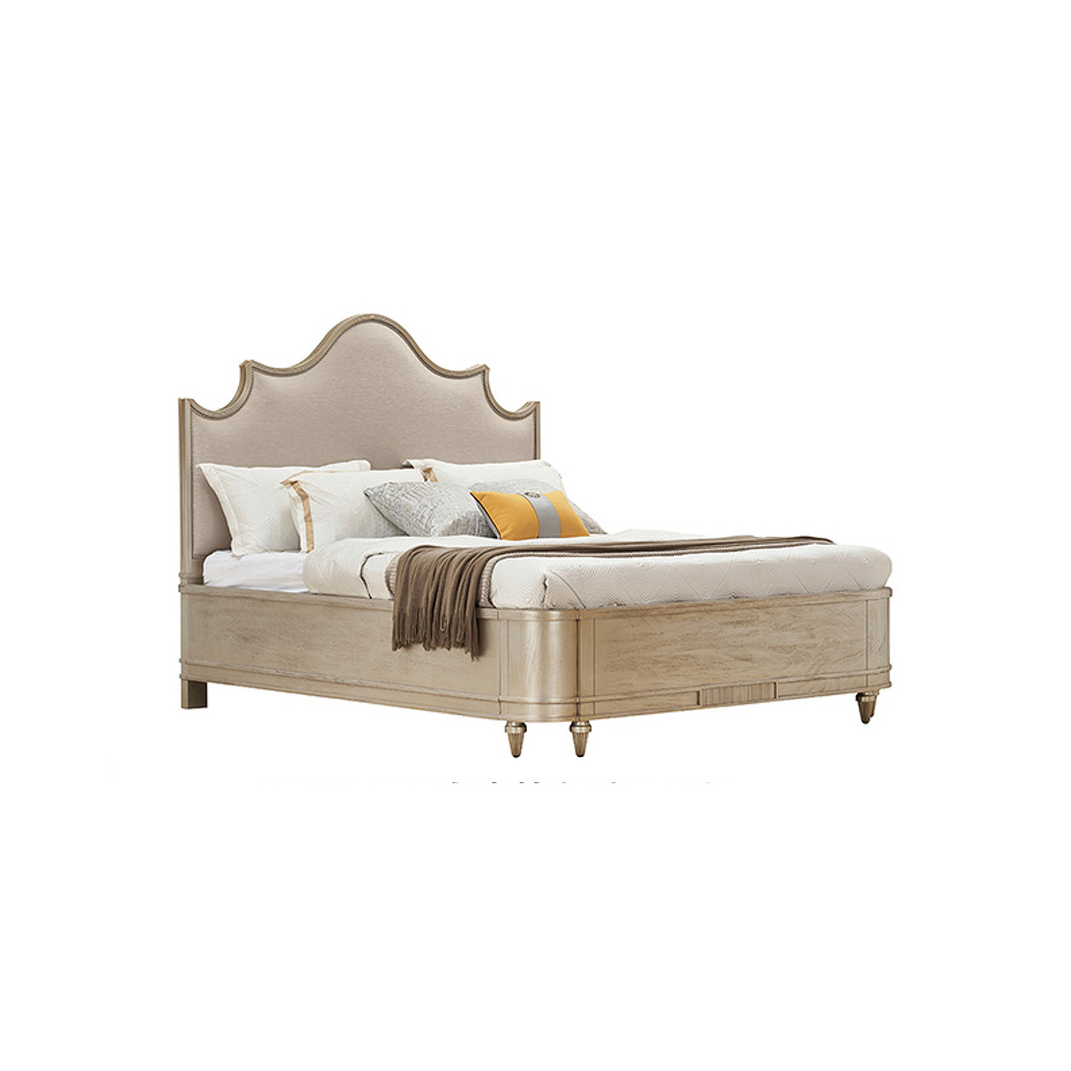 材质:进口橡胶木+实木多层板+进口艳阳花木皮+高精密布艺软包